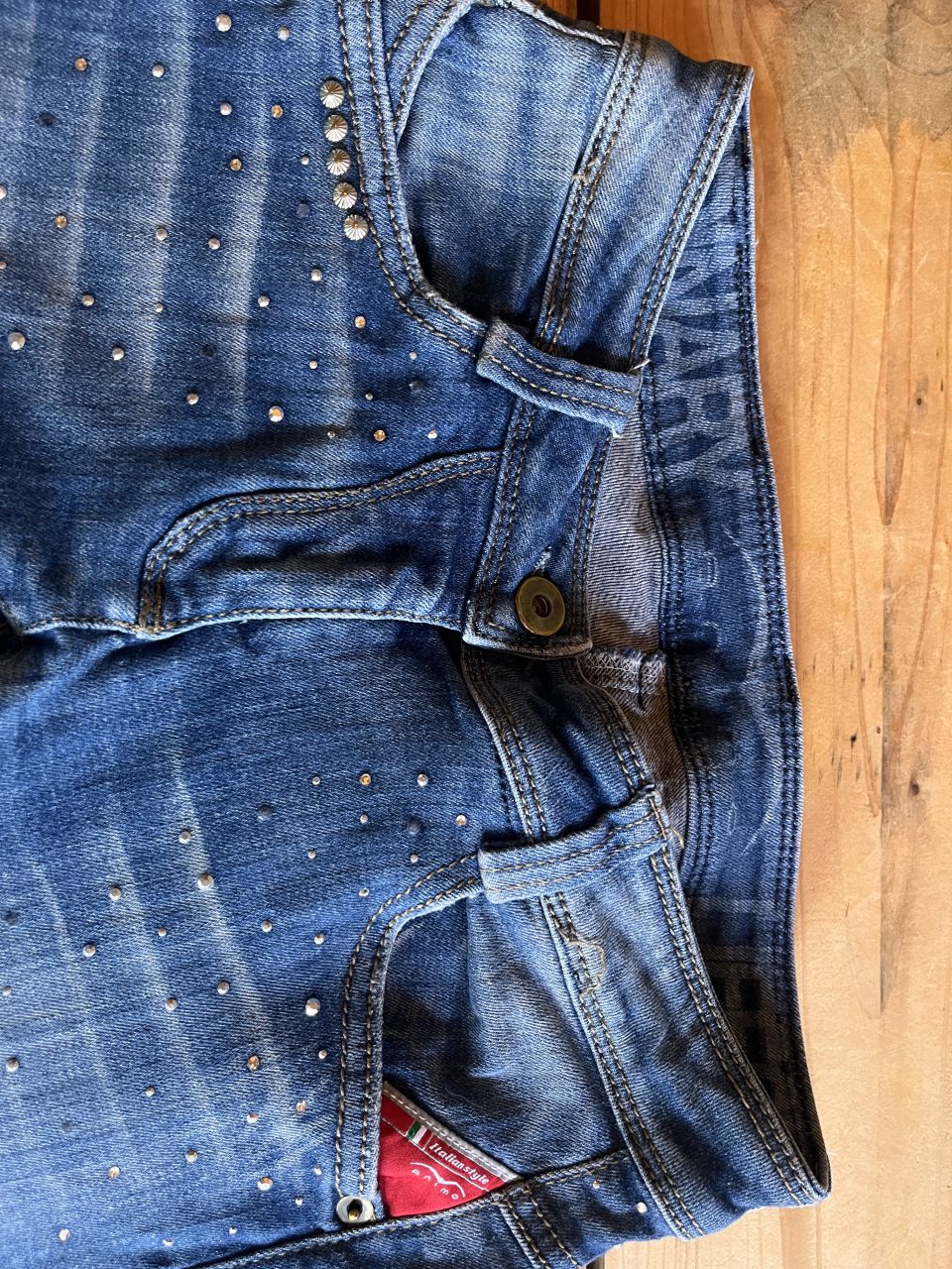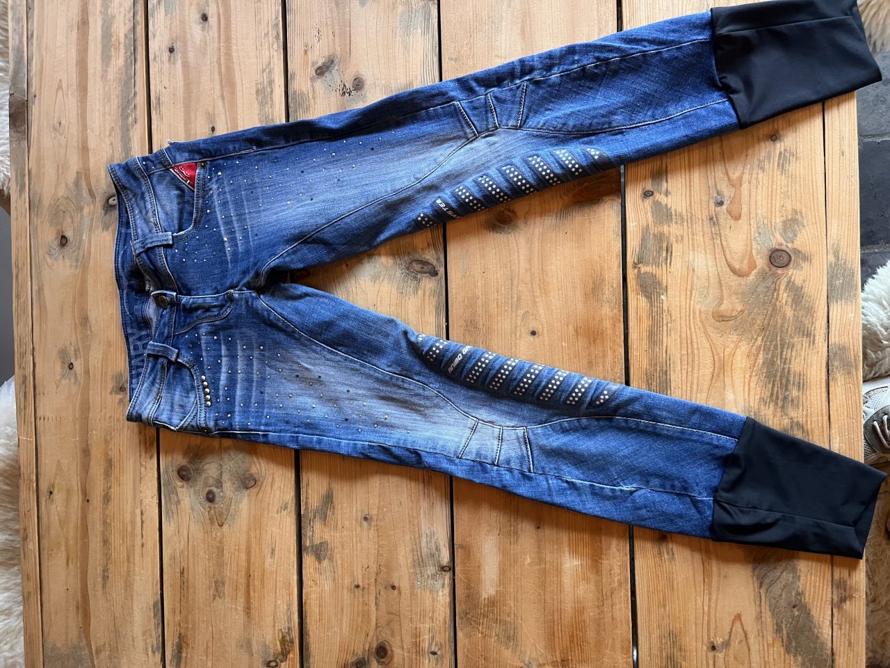 Super mooie jeans rijbroek van Animo met strass steentjes en nog zeer goede anti slip ad binnenkant vd benen.