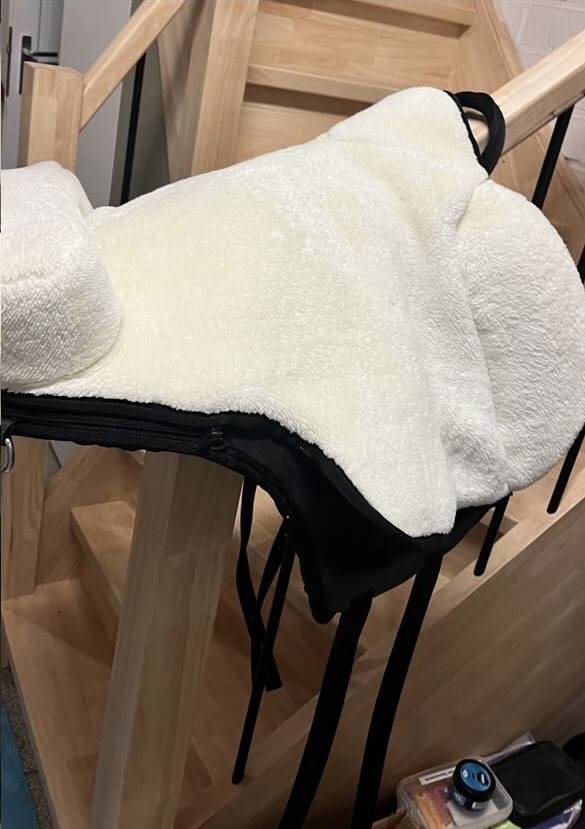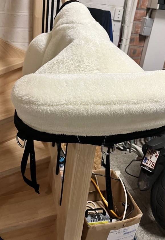 Geen beschadigingen of vlekken op de barebackpad hij is helemaal proper en zo goed als nieuw aangezien hij maar enkele keren gebruikt is geweest.
