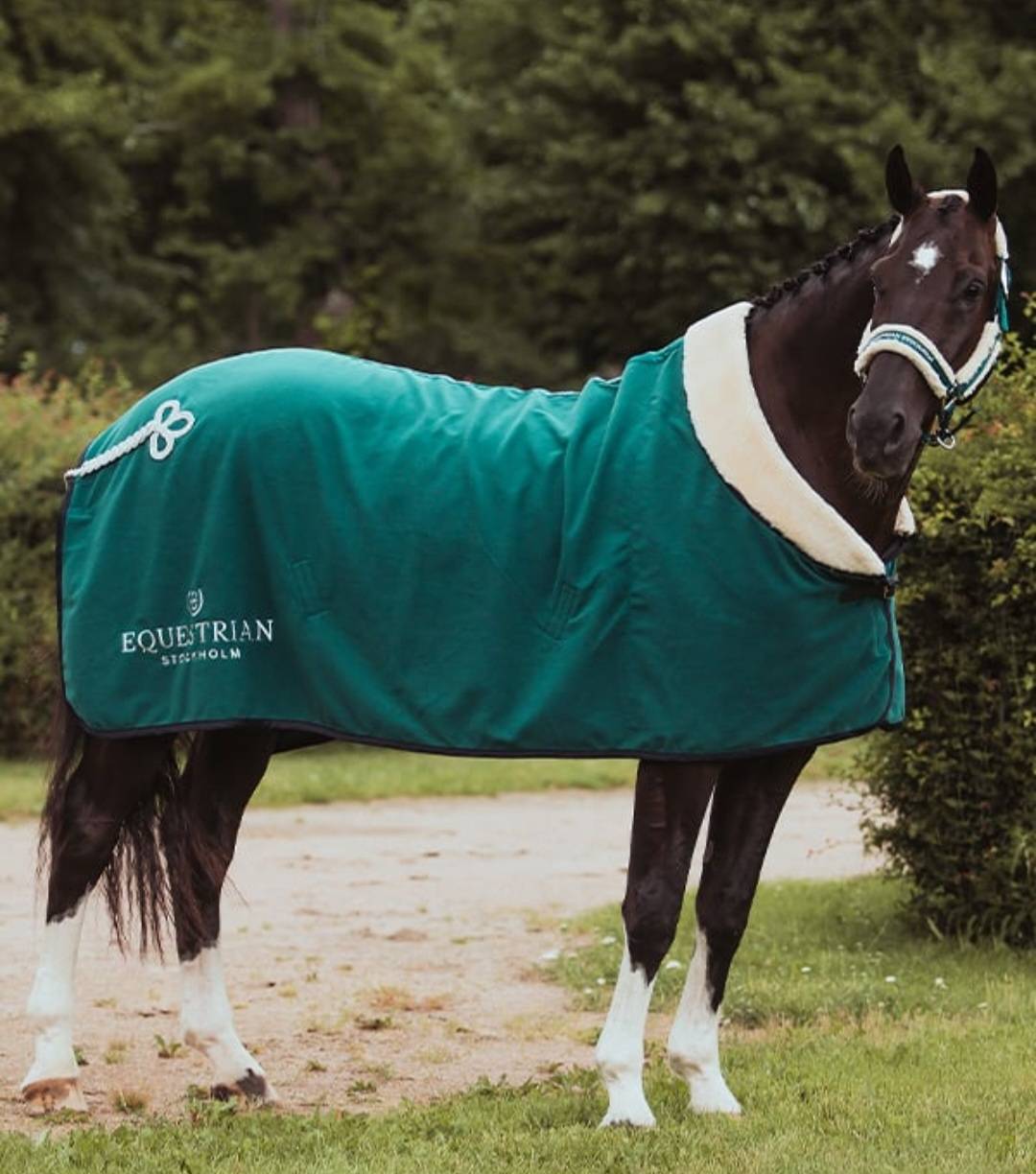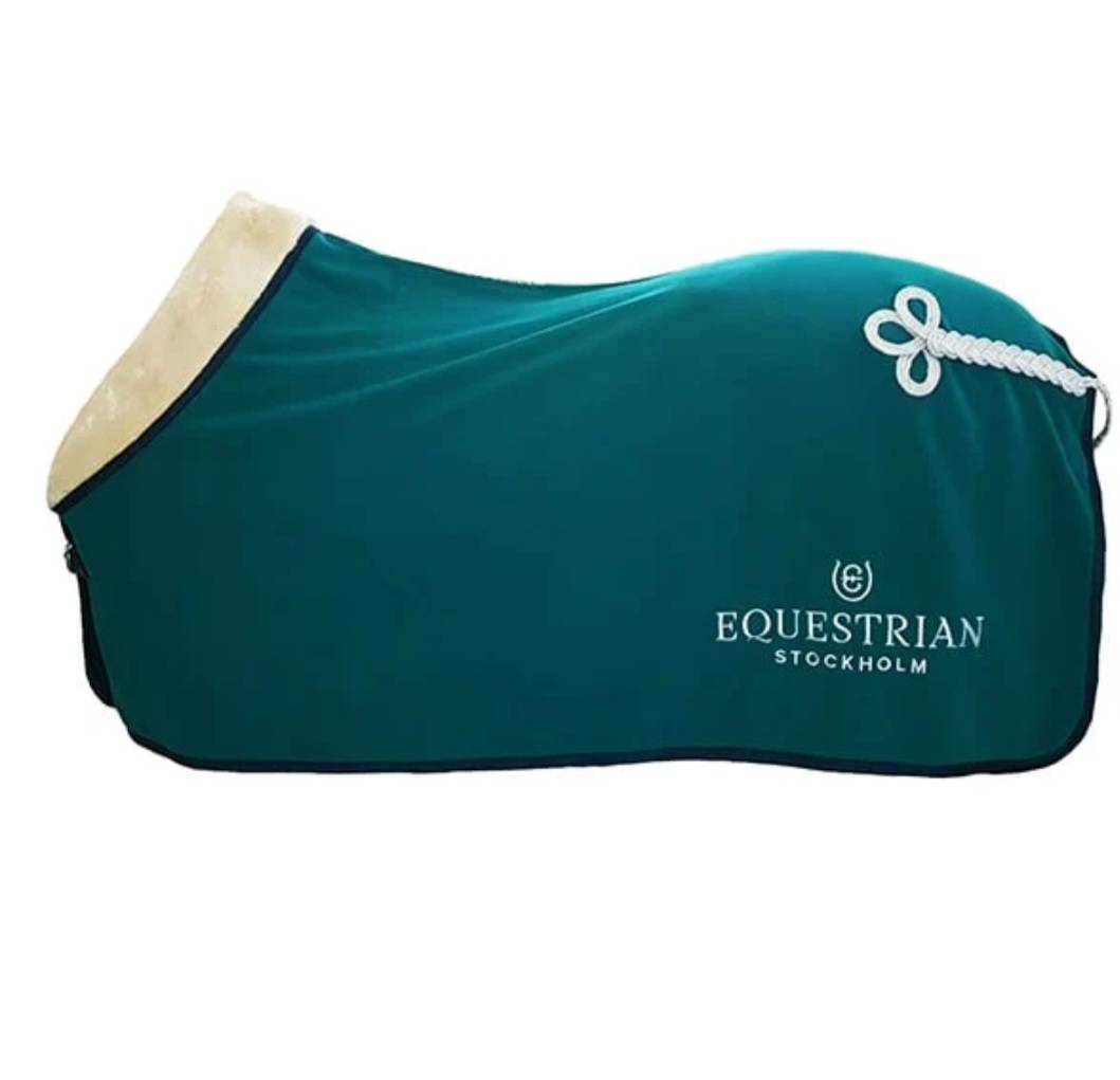Houd je paard warm met deze elegante fleece deken in prachtig smaragdgroen! Gestyled met een superzachte teddy kraag en elegante details. Gemaakt van top-kwaliteit ECO fleece voor minimale impact op het klimaat. Versterkte polyester voering onder de voorkant voor minder schuurplekken. Gesp in imitatieleer.