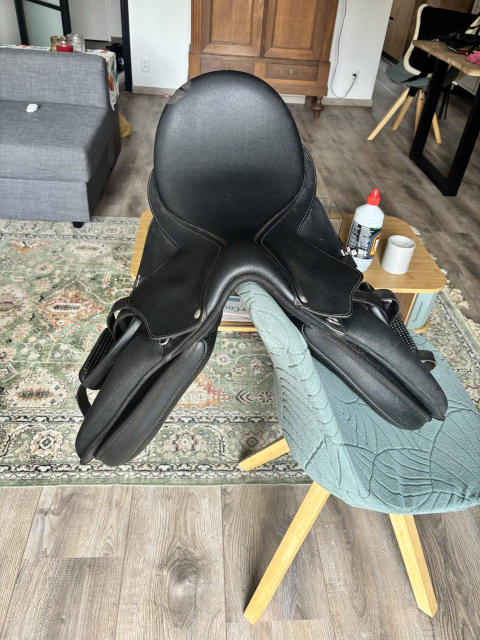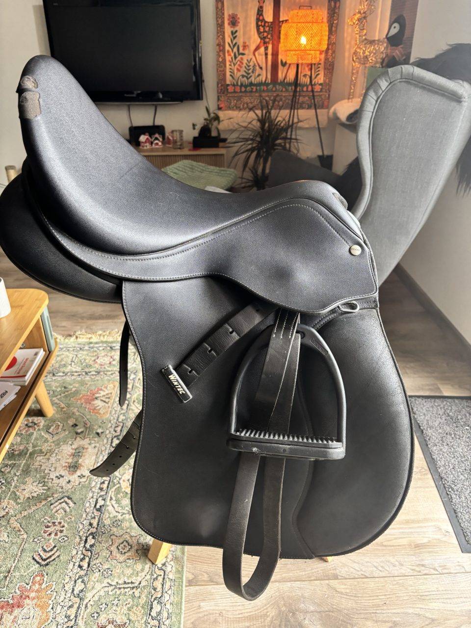 Ik verkoop dit wintec zadel wegens gestopt met bijrijd pony. Het is een mooi zadel die wel gebruikt is maar niks mee mankeert. Er zijn kleine gebruikers sporen zie foto’s. Het zadel zelf is 16,5 inch maar de boom is wisselbaar. Ik verkoop het zadel met gratis beugels en een singel.